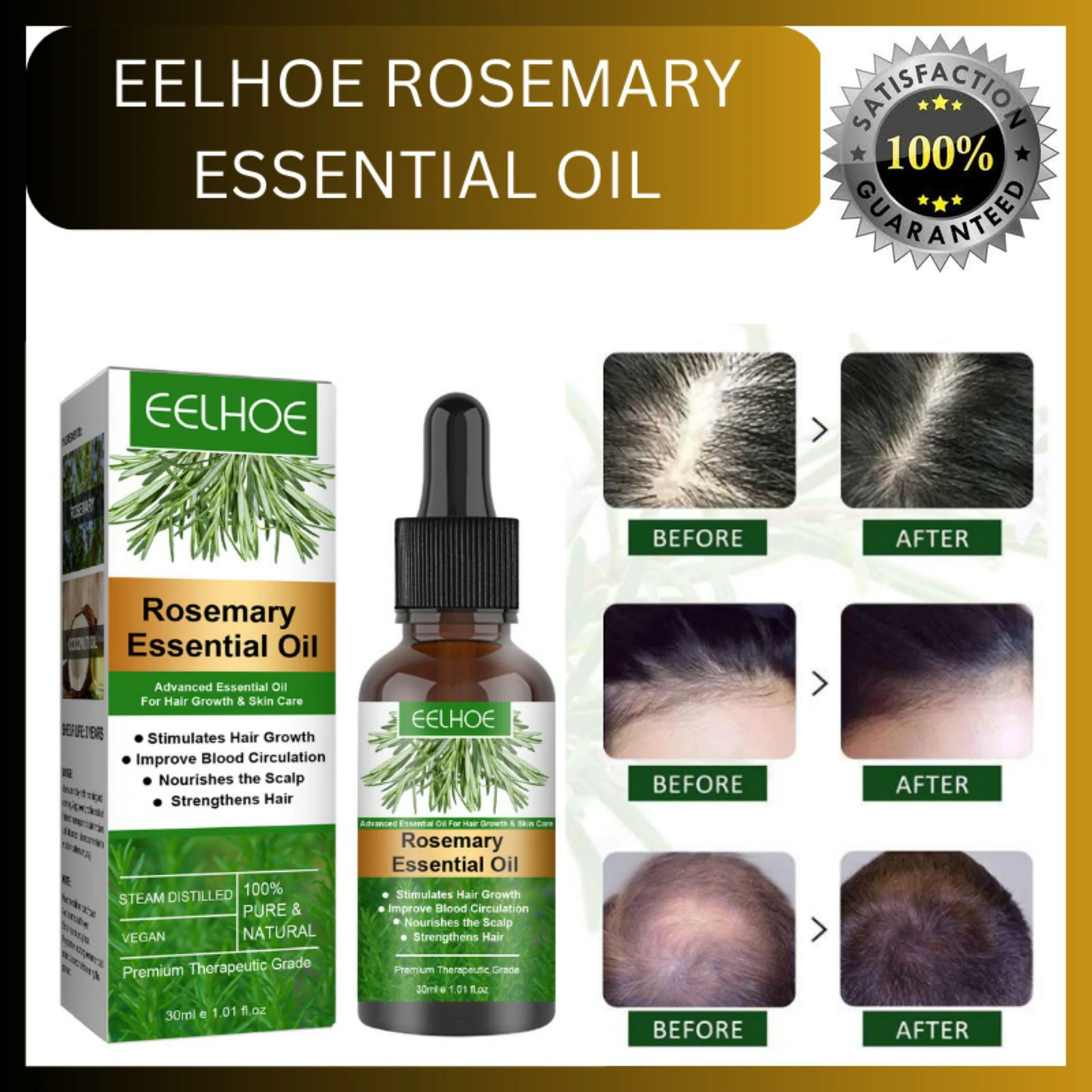 Offer Alert! Rosemary Essential Oil plumps up your hair by stimulating the scalp for hair growth.